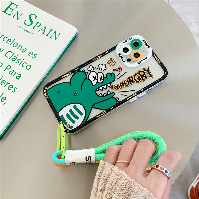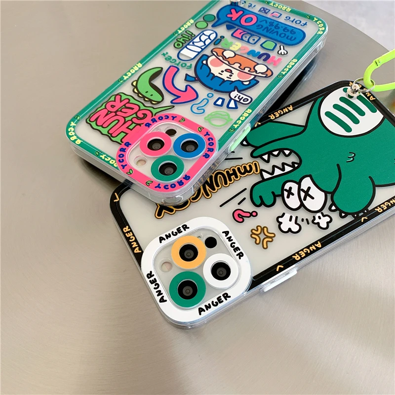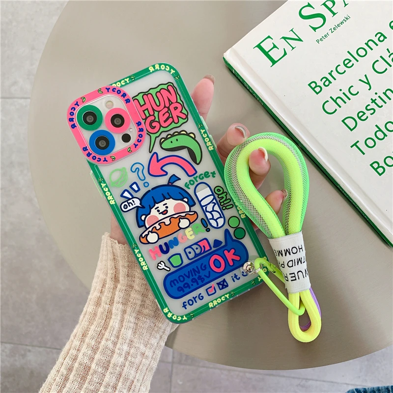Cute Colorful Flowers Smile Graffiti label Tide Soft Case for iphone 14 13 Pro Max 12 11 XR XS 7 8 plus SE Cover With Hand Strap